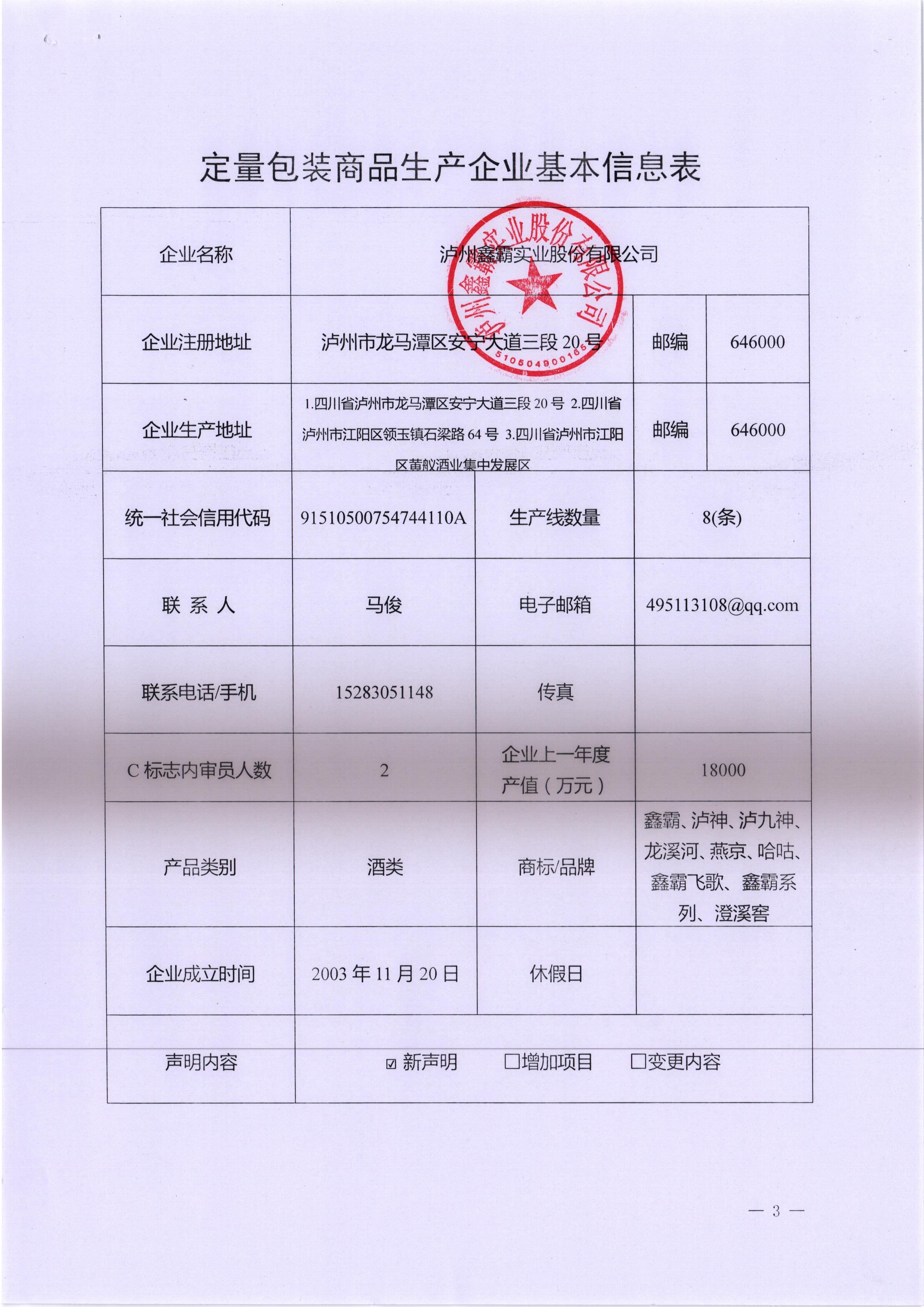 瀘州鑫霸實業(yè)股份有限公司